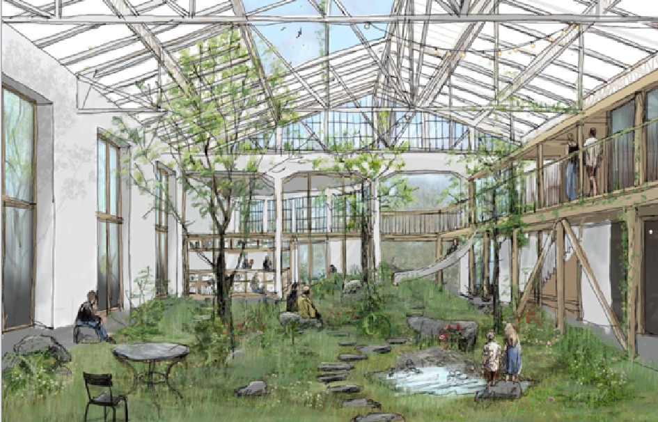 • le tout organisé autour d’1 hall de 300m² et d’un jardin intérieur à ciel ouvert de 200 m².