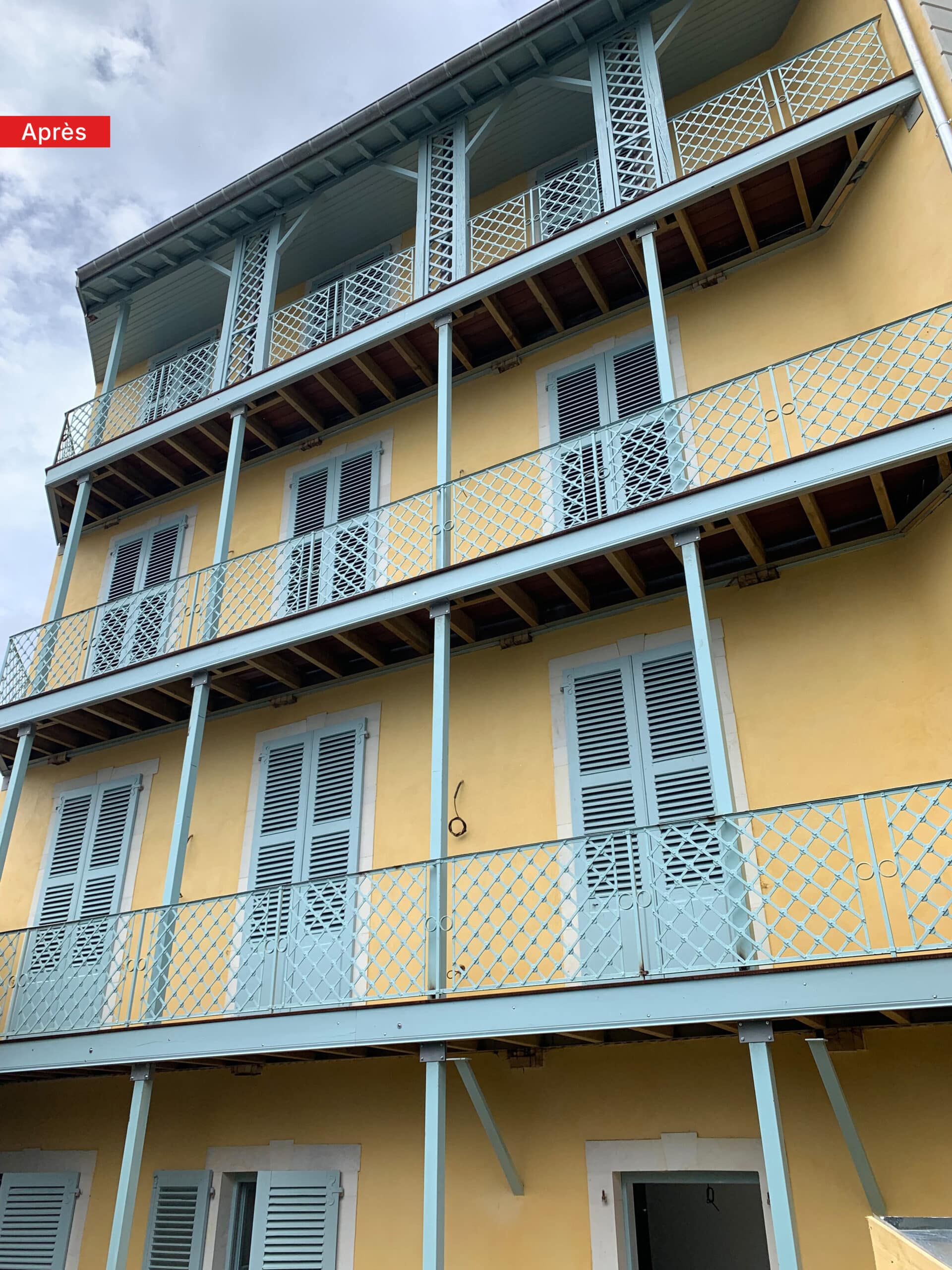 Les travaux ont permis de préserver et de mettre en valeur les éléments historiques du bâti — façades, parquets, cheminées, ferronneries, menuiseries, galeries — tout en créant des logements confortables et adaptés aux familles. Des espaces extérieurs communs viennent compléter l’ensemble pour améliorer la qualité de vie des habitants.